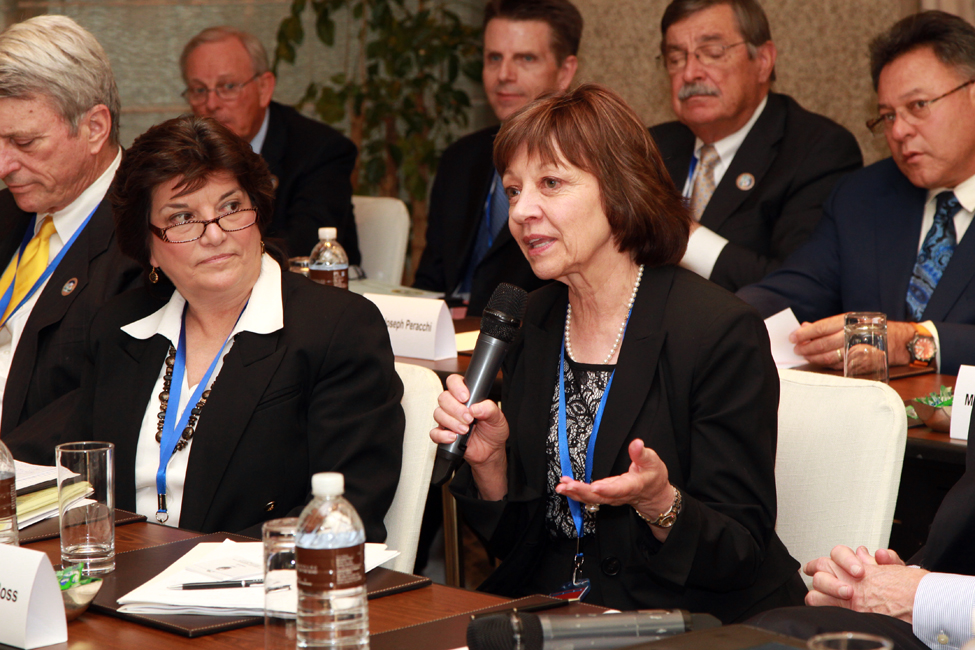 Governor Brown offers comments at the Shanghai forum. In the background is Peter Huo, in-country representative for Wine Institute.