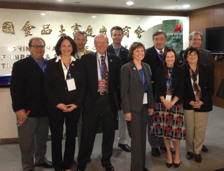 California agricultural delegates at the Taste of California event (from left): John Harris, Harris Farms; Sean Martin, Driscoll’s; Melissa Poole, Paramount Farming Company (front); Cathy Calfo, CCOF; Michael Rue, Rue & Forsman Ranch; David Ahlem, Hilmar Cheese.
