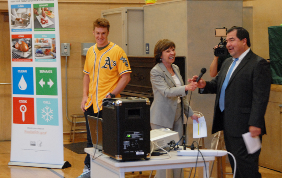 Secretary Ross handing it over to FSIS Administrator Al Almanza; Oakland A’s rookie Mark Canha joined them as the event’s featured speakers.