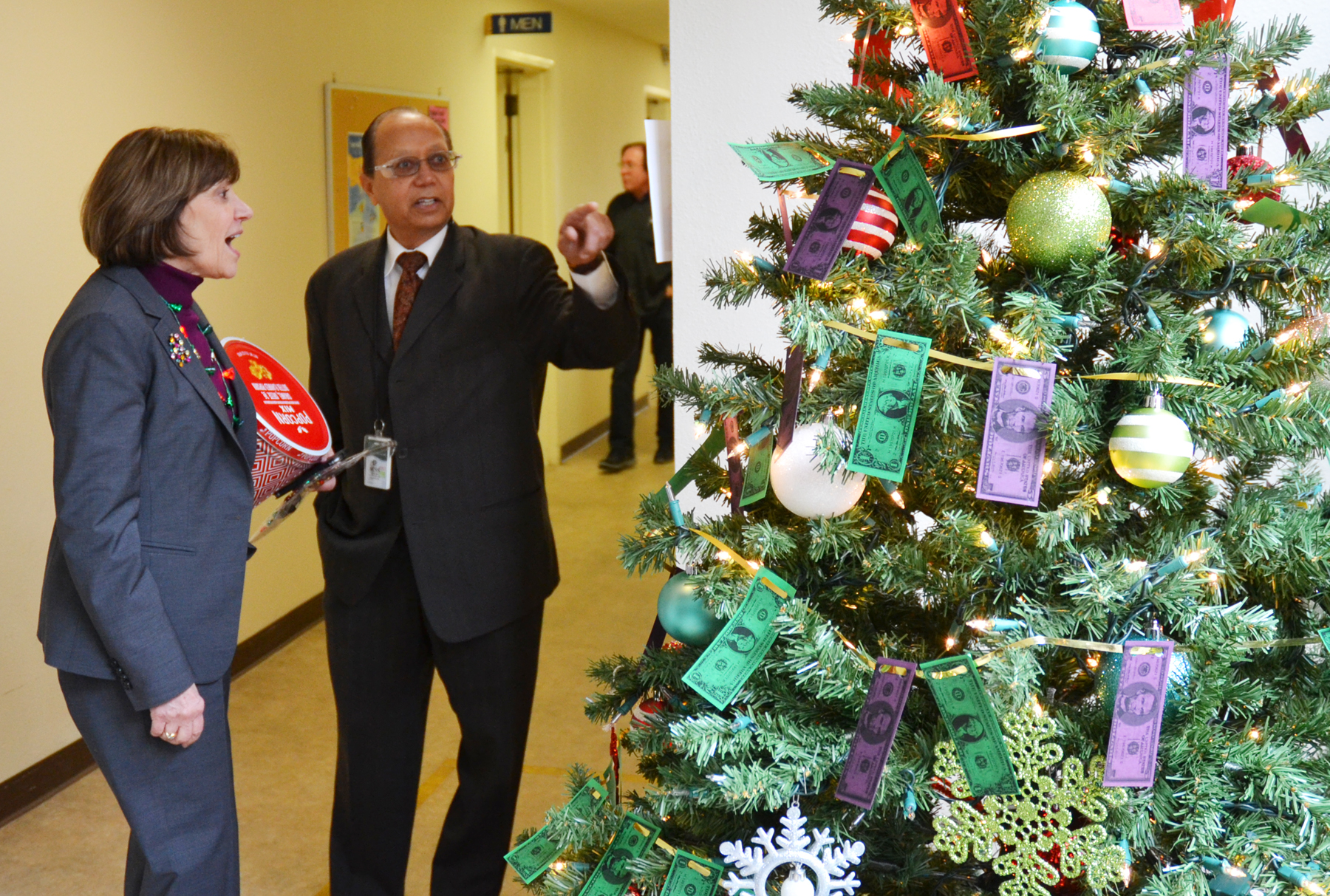 Secretary Ross thanks Dania King at the Chem Lab for her leadership of the “Our Promise” charitable campaign.