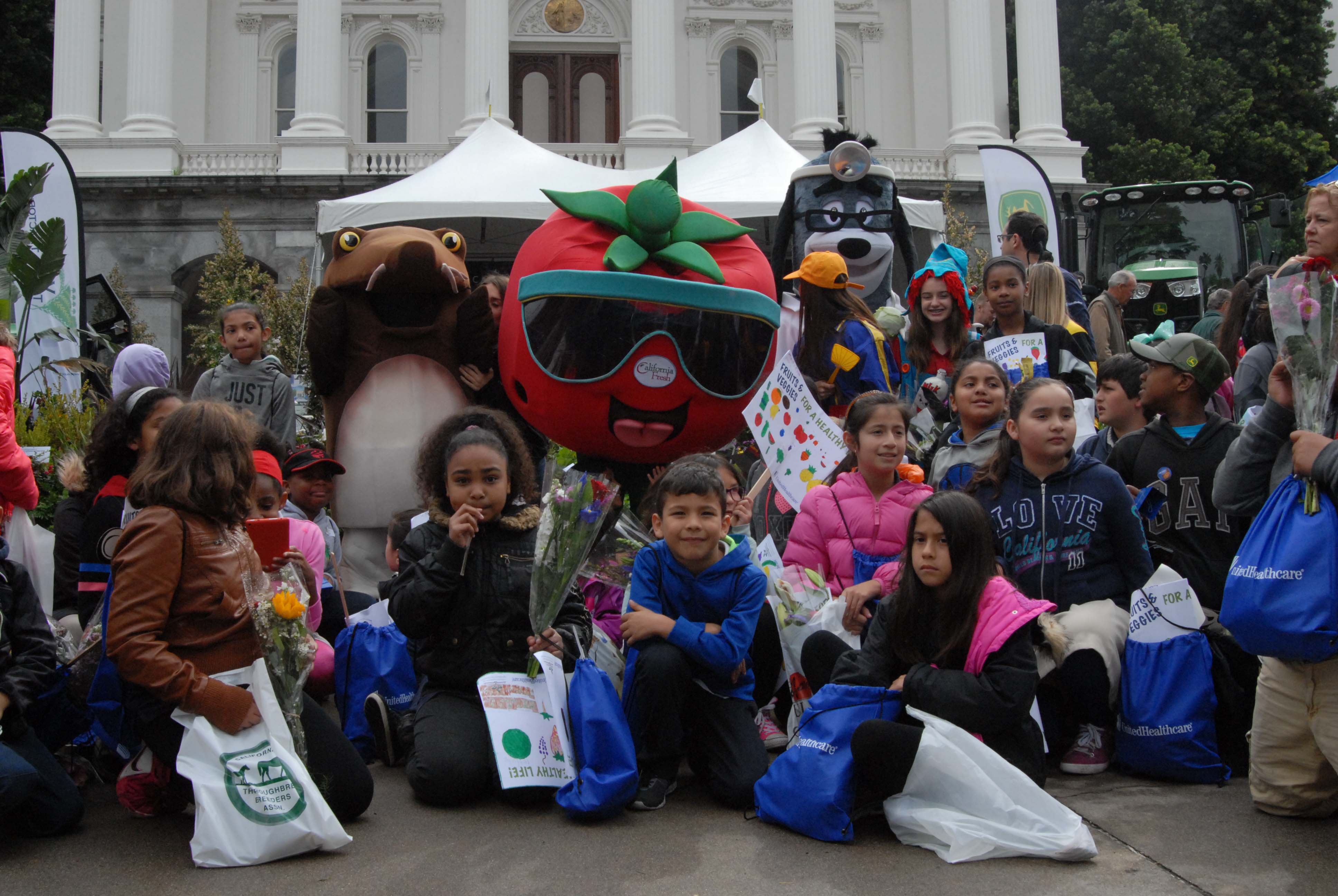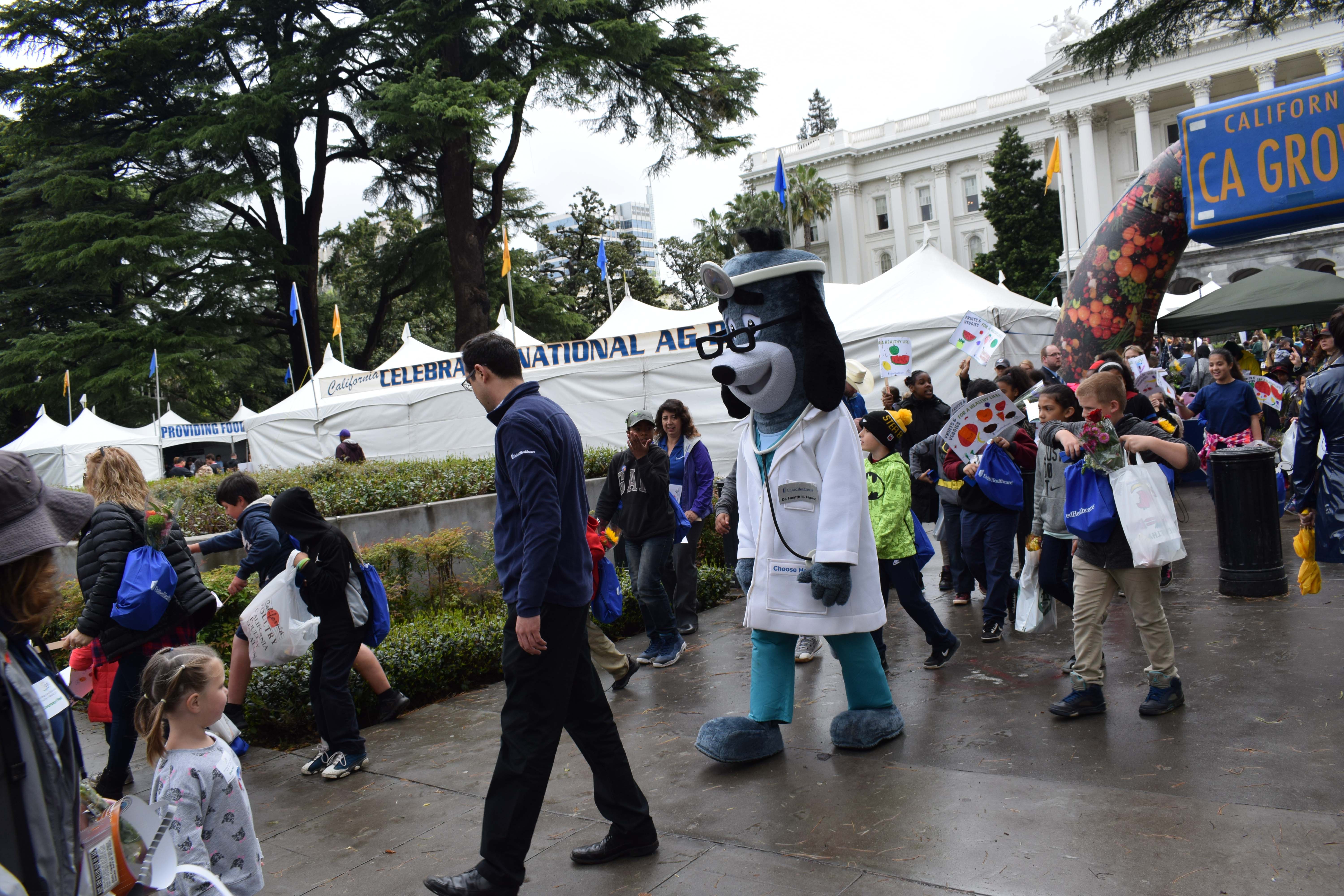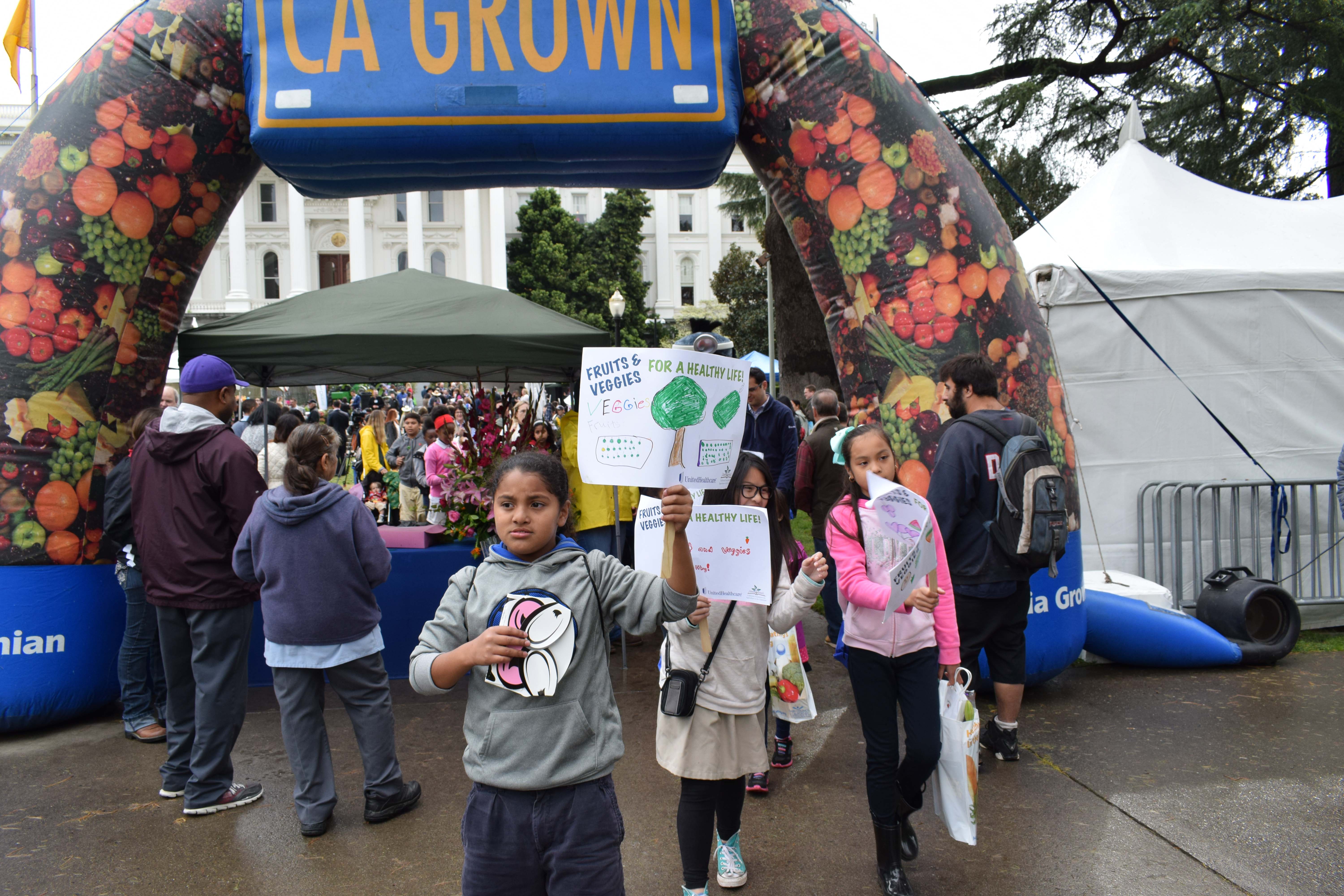 - Kids carried signs reading “Fruits & Veggies for a Healthy Life!” as they participated in a health walk around the capitol building, starting with calisthenics right in the middle of Ag Day.