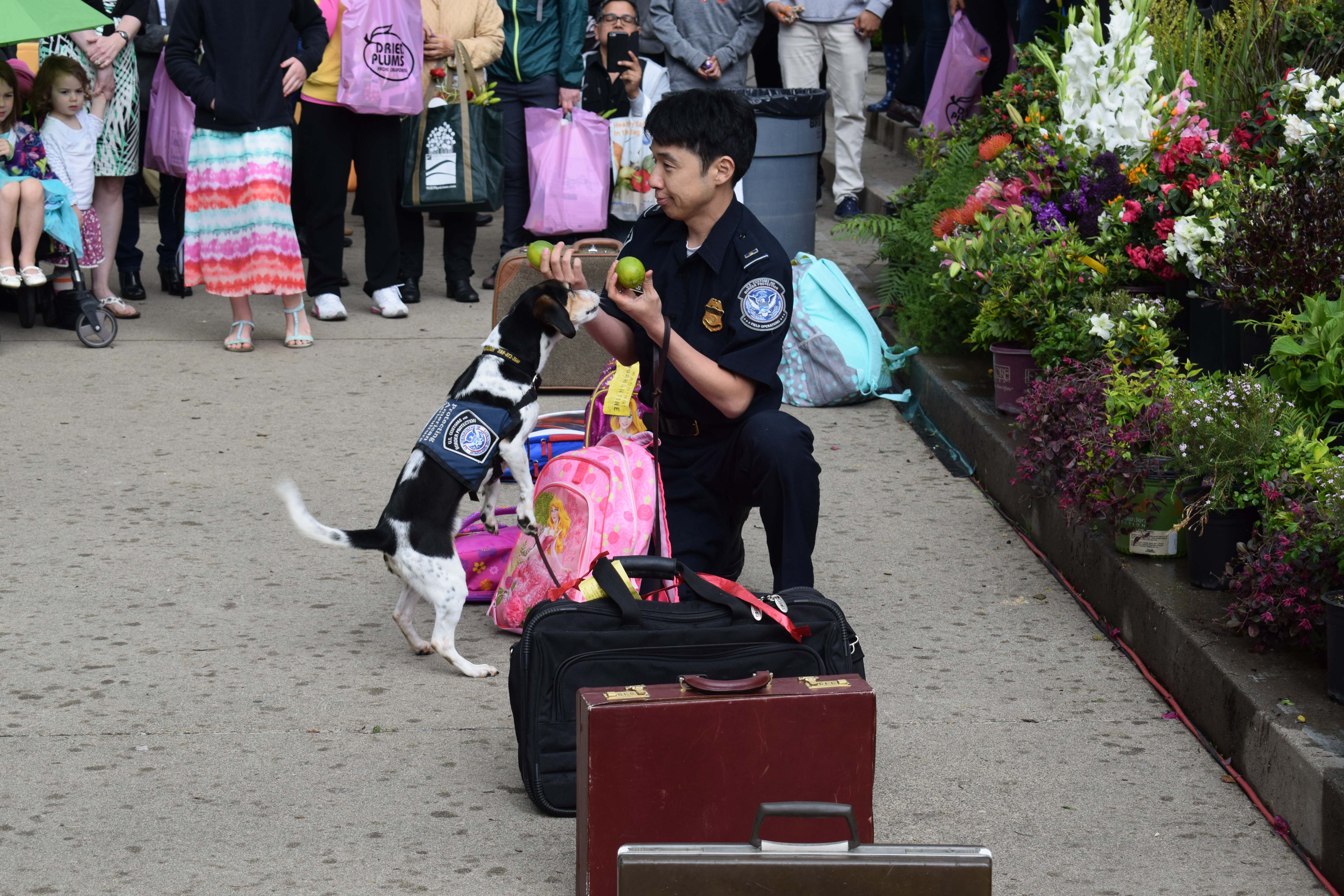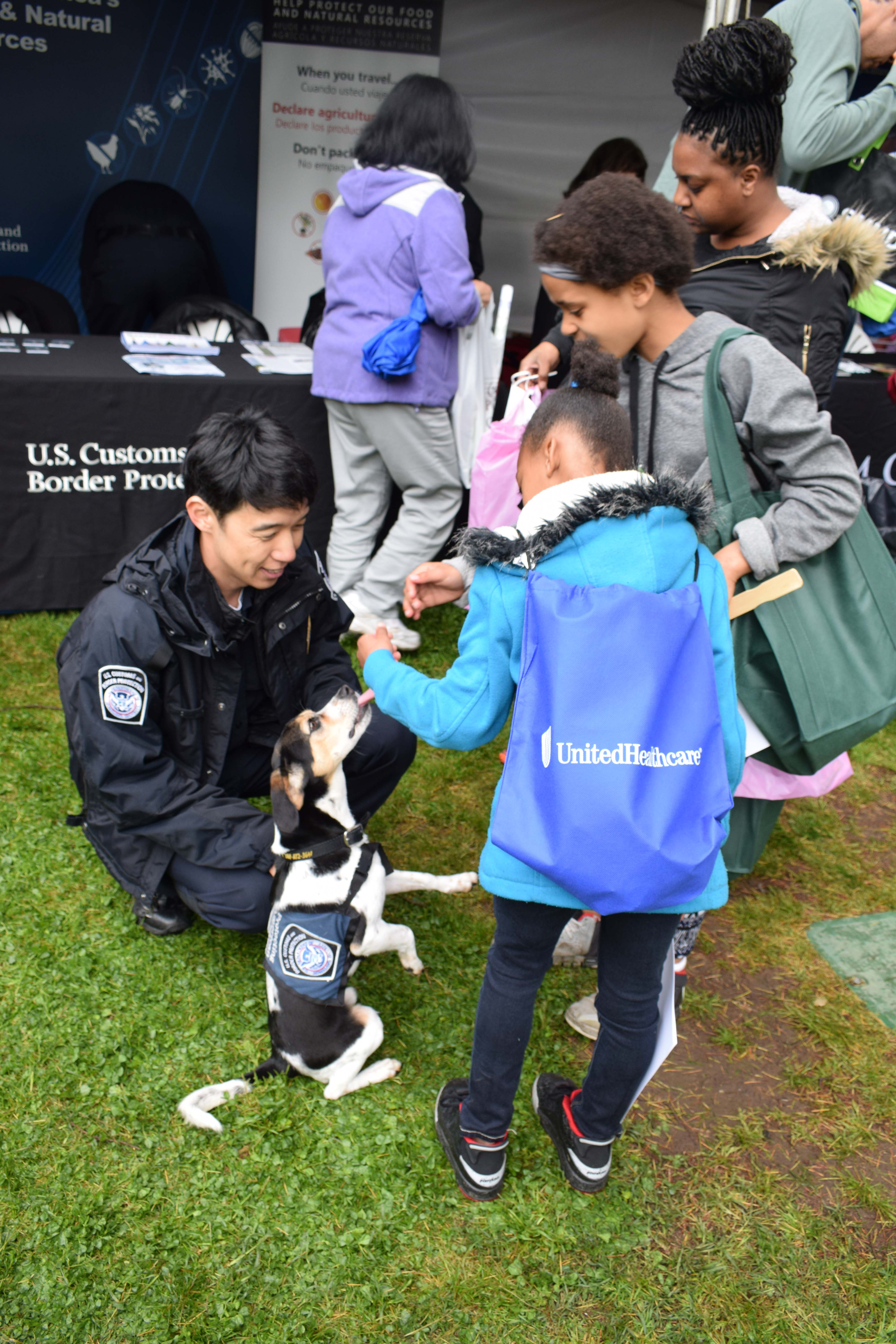 - Myers, a highly trained detector dog with US Customs and Border Protection’s “Beagle Brigade,” and handler Danny Lee greet Ag Day attendees.