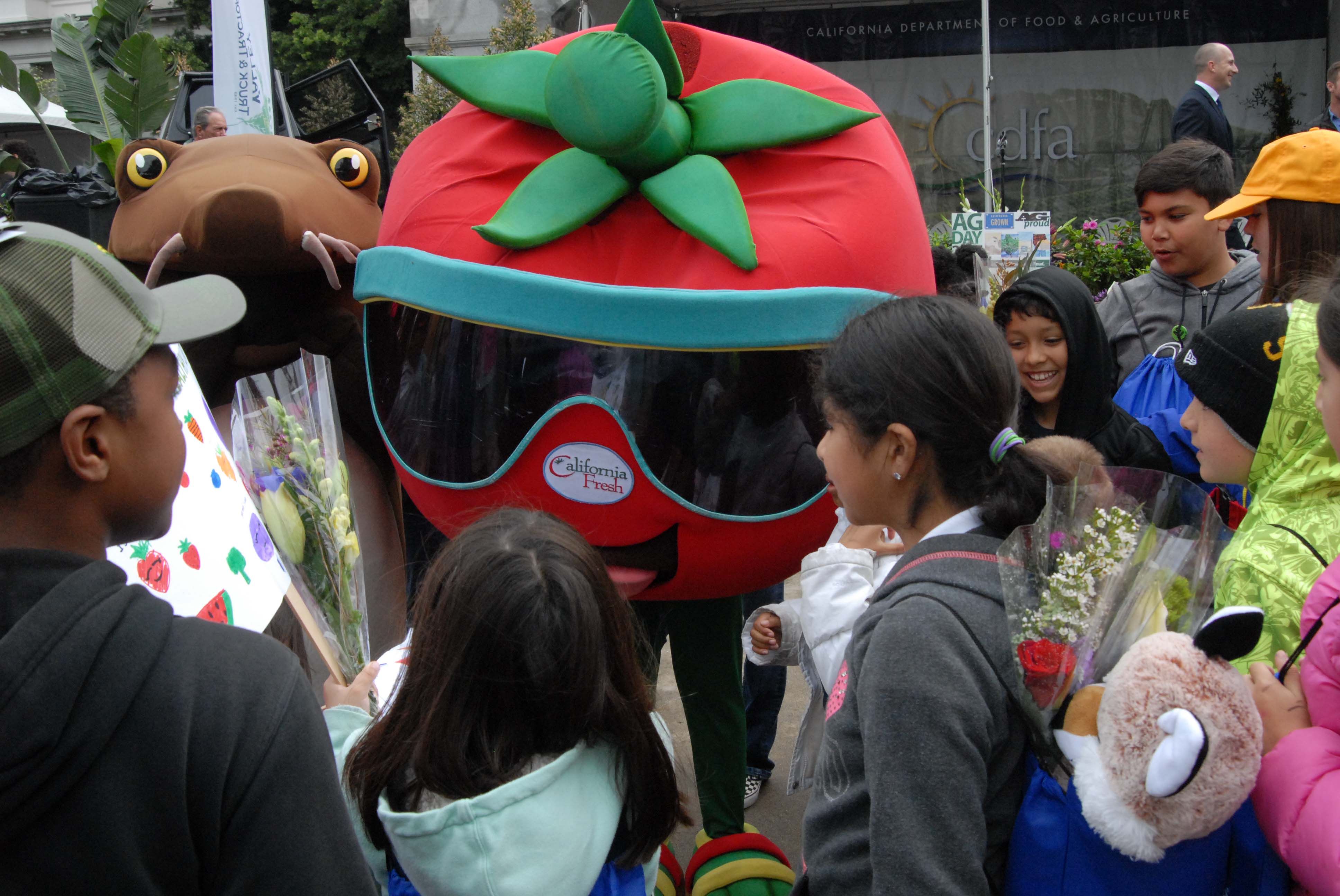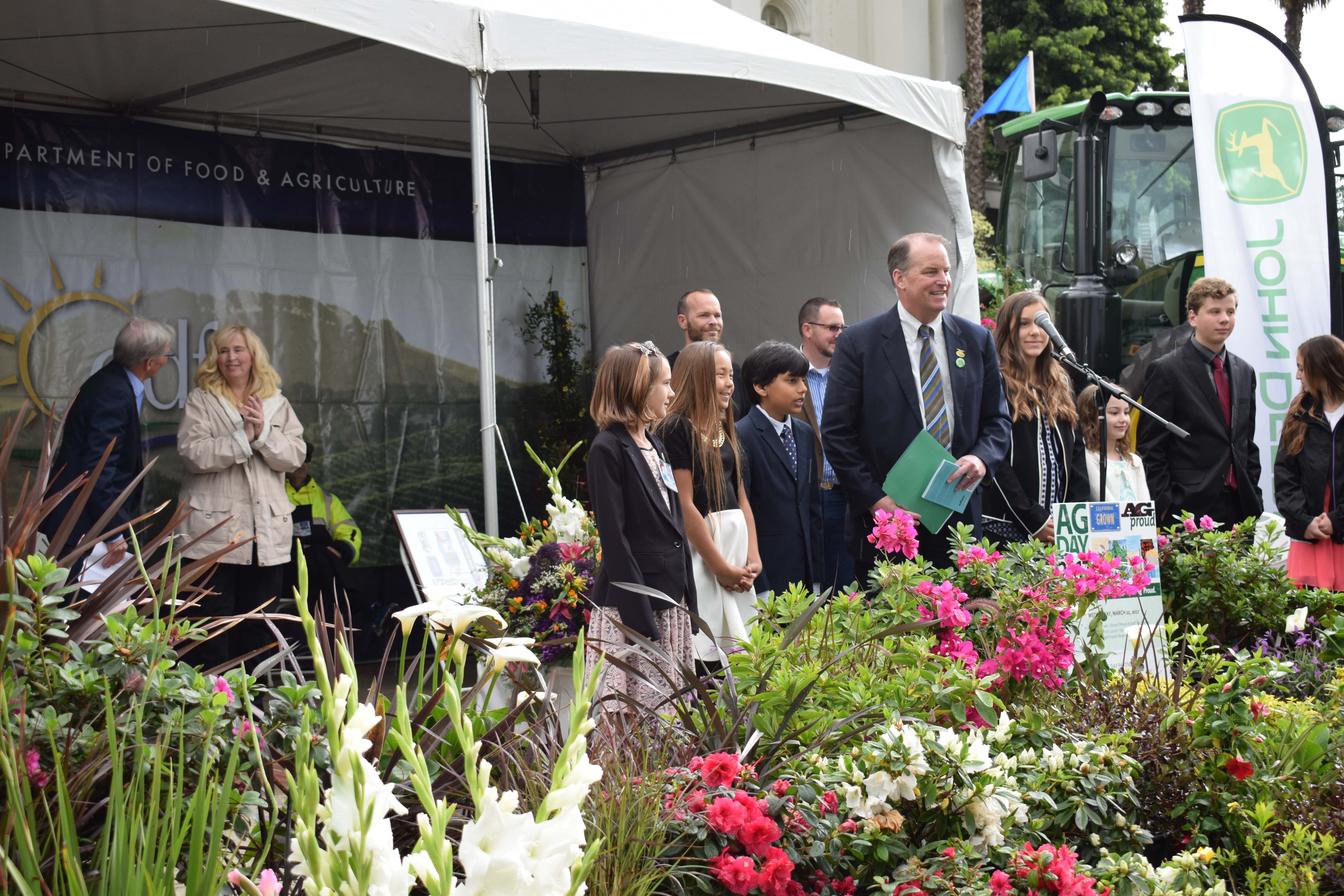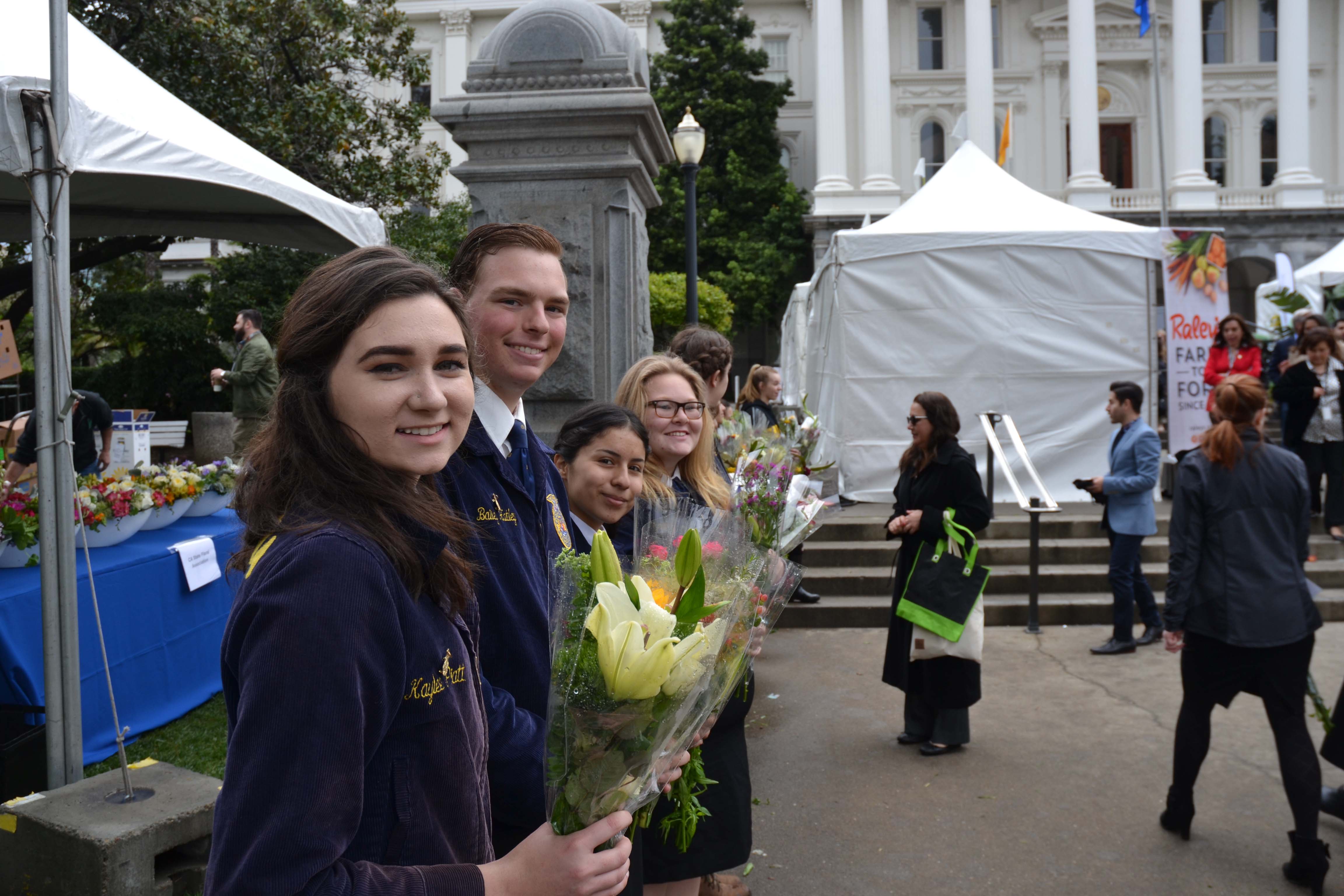 - The “Blue Jackets” of FFA were everywhere at Ag Day – especially helping hand out flowers at the California State Floral Association booth.