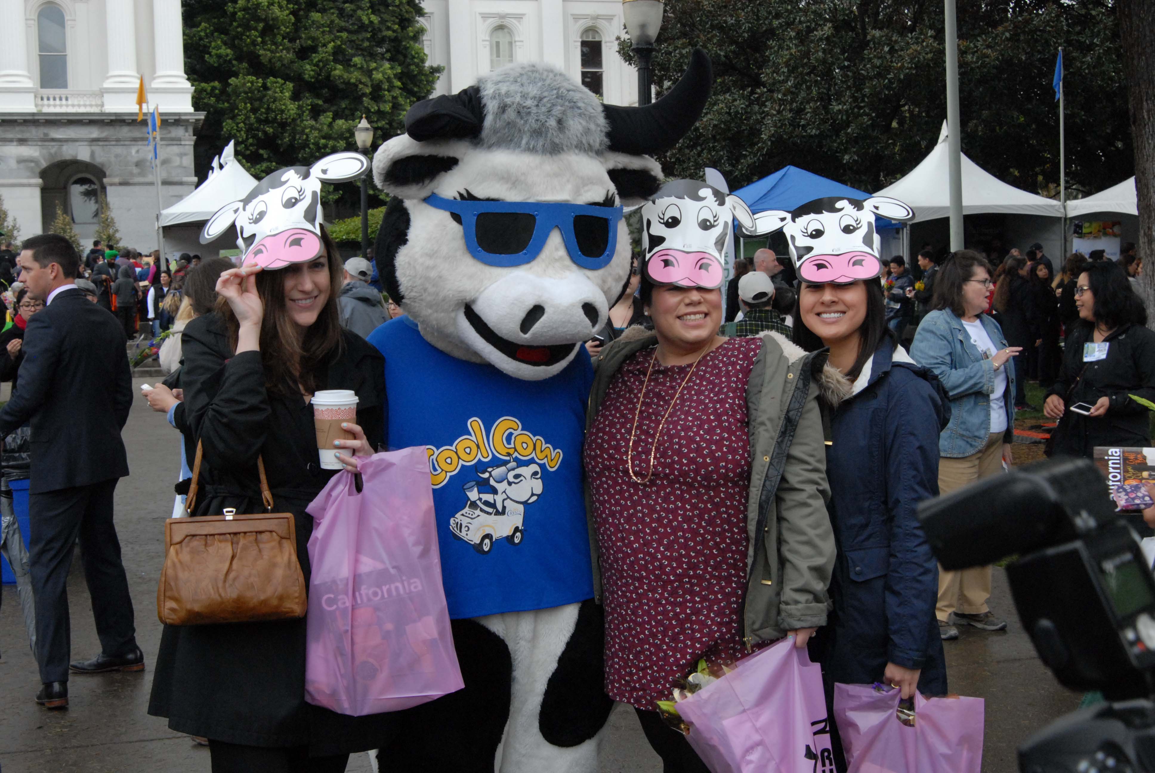 It just wouldn’t be Ag Day at the California Capitol without “Cool Cow” and our rodeo queens (from left): Brittney Phillips, Miss Rodeo California; Megan Ford, Miss California Rodeo Salinas; and Leandra Steenkamp, Miss Grand National Rodeo 2017.