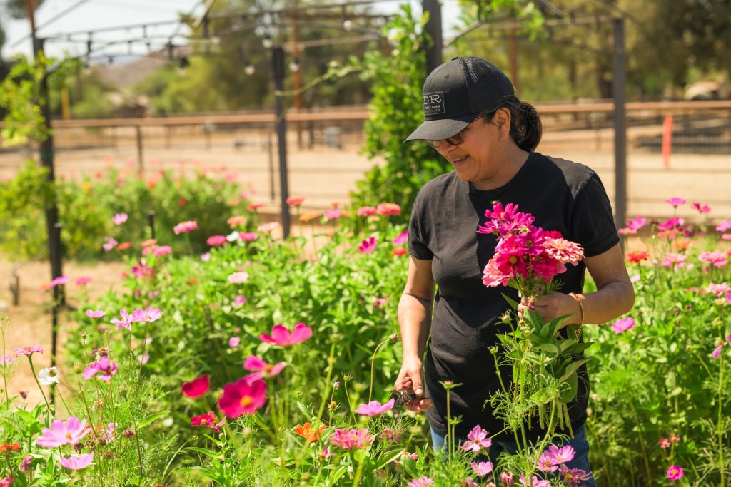 Sustainable agriculture doesn’t always require fancy technology. At DeBellis Ranch, a small family farm outside of Los Angeles, sustainability is much simpler. The U-pick flower farm employs native plants to attract pollinators, chooses drought-tolerant flower varieties like zinnias and ranunculus and boasts a unique method of “integrated pest management”. A team of adorable cats prowl the rows, eliminating threats like rats, rabbits and squirrels that would otherwise munch on the flowers. “We used to lose entire rows overnight,” owner Annji DeBellis shares with a smile. “Now? Our cats sleep in the rows and keep everything safe. And yes, we feed them, they just love to hunt.”