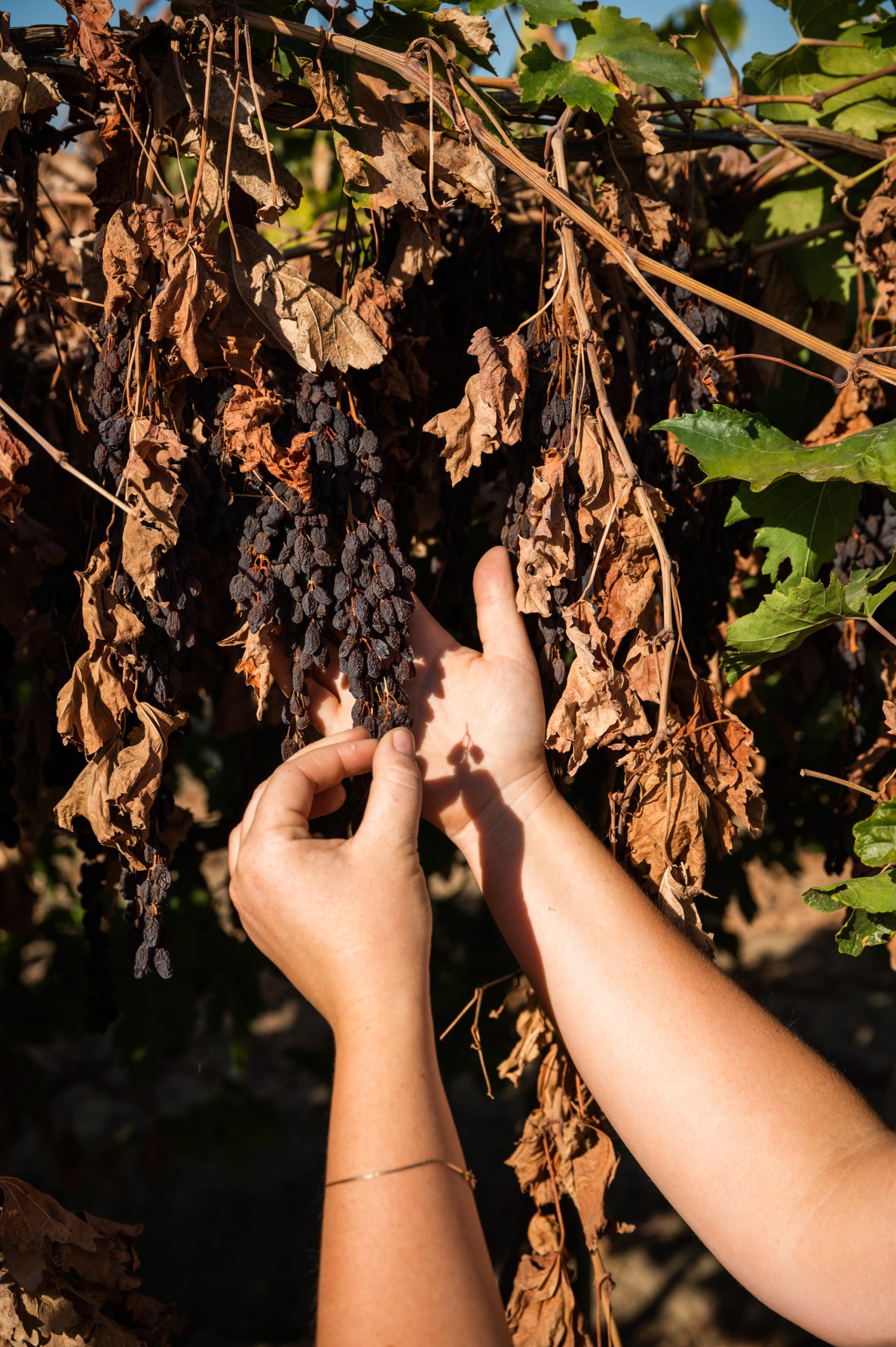 Growers throughout the Central Valley specialize in vine-dried raisins. While all raisins are sun-dried grapes, traditional raisins are harvested and then laid on paper trays between the rows to dry. Vine-dried raisins remain on the vine to dry naturally, making them a more sustainable option. Drying on the vine reduces labor, paper usage and post-process production. DOV raisins also boast a higher yield – double the tonnage per acre while using the same amount of water.